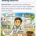 Morowali Utara – Sejumlah dokter di Kabupaten Morowali Utara (Morut), Sulawesi Tengah, mengeluhkan belum dibayarkannya insentif mereka menjelang Hari Raya Idulfitri. Kondisi