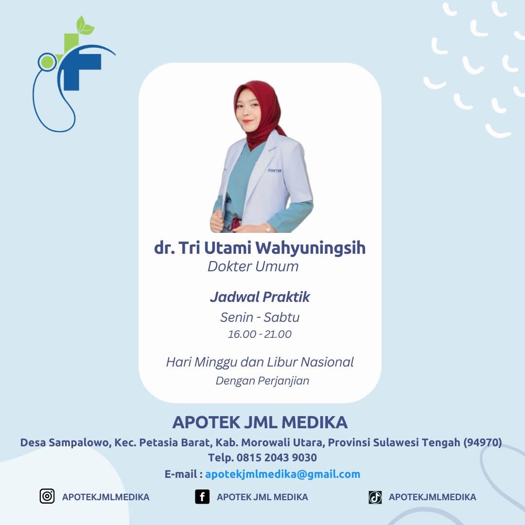 Kini, dr. Ami adalah dokter umum sekaligus pemilik Apotik JML Medika yang berlokasi di Desa Sampalowo, Kecamatan Petasia Barat, Kabupaten Morowali Utara.