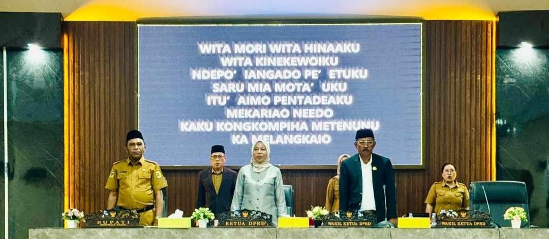 MORUT- Lagu Mars Wita Mori di nyanyikan dalam setiap momen penting di Morowali Utara (Morut), termasuk rapat paripurna DPRD Morut yang berlangsung sore ini. Senin, 22 September 2025.