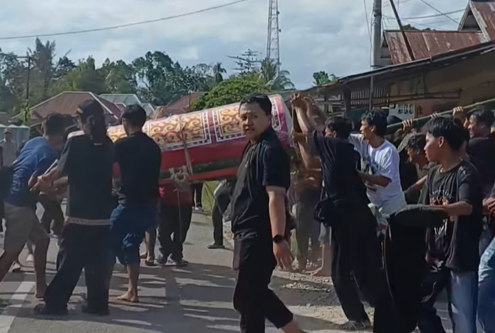 Sepanjang perjalanan menuju Patane, suasana duka berpadu dengan ketertiban prosesi adat. Keluarga dan masyarakat mengiringi langkah pengusungan dengan doa, menjaga kekhidmatan sesuai tradisi leluhur yang telah diwariskan secara turun-temurun.